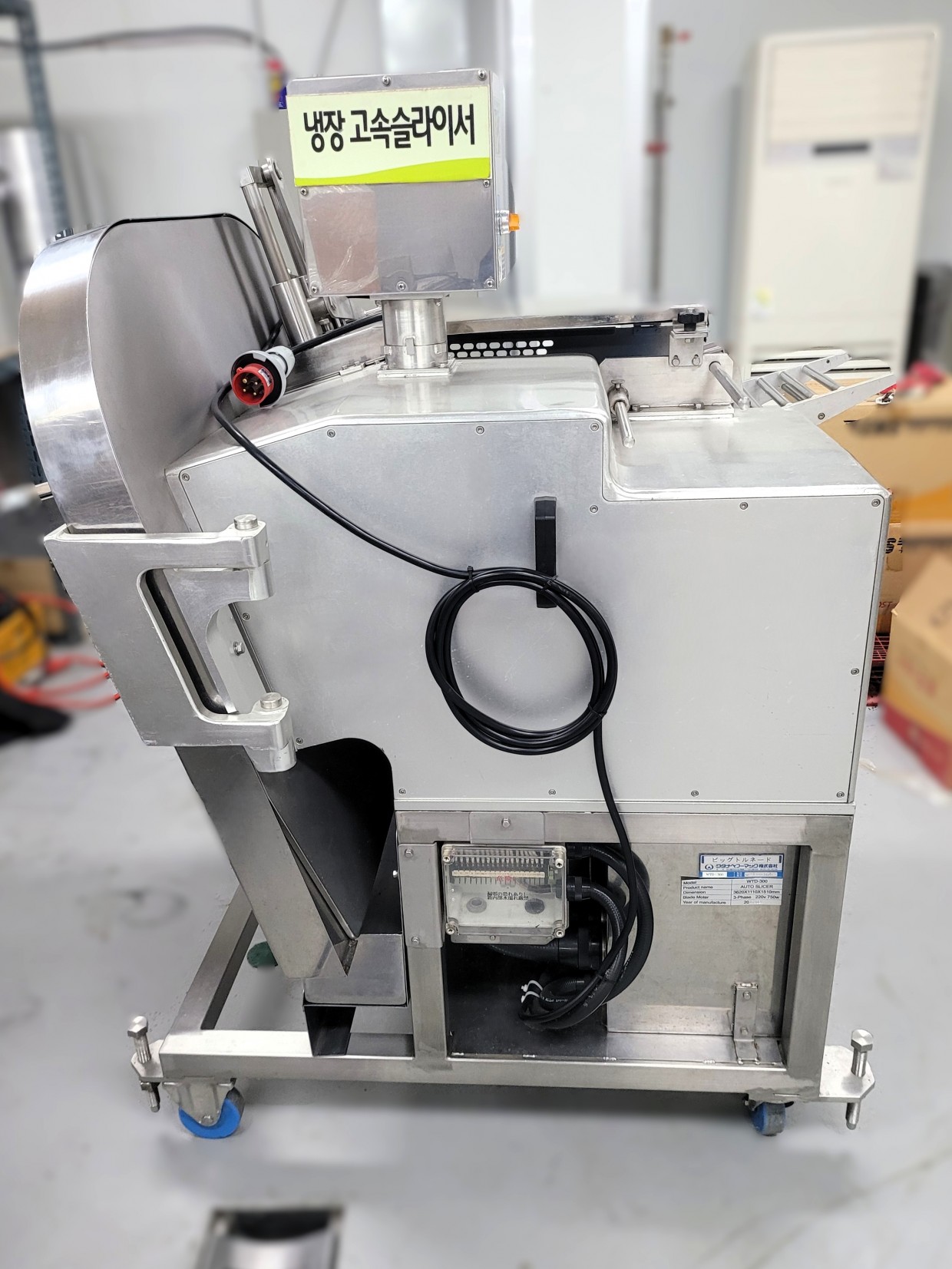 | 기계명 | A급 중고 냉장 고속슬라이서 (컨베이어벨트 포함) | 모터 | ||